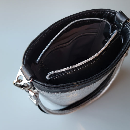 Leather Baby Bucket Bag - Silver/Black